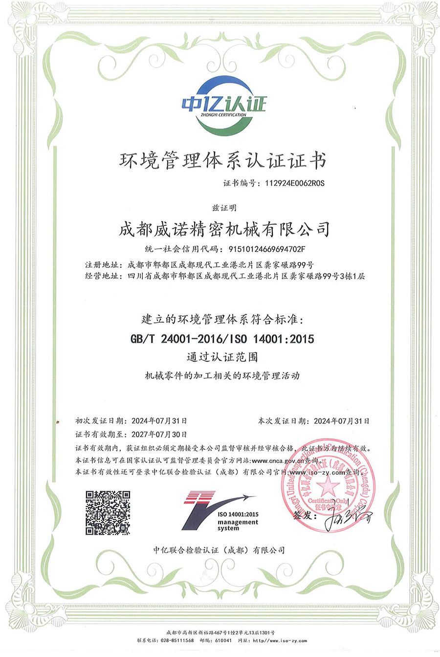 環境管理體系認證證書